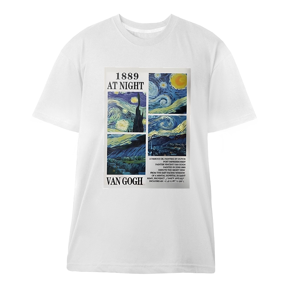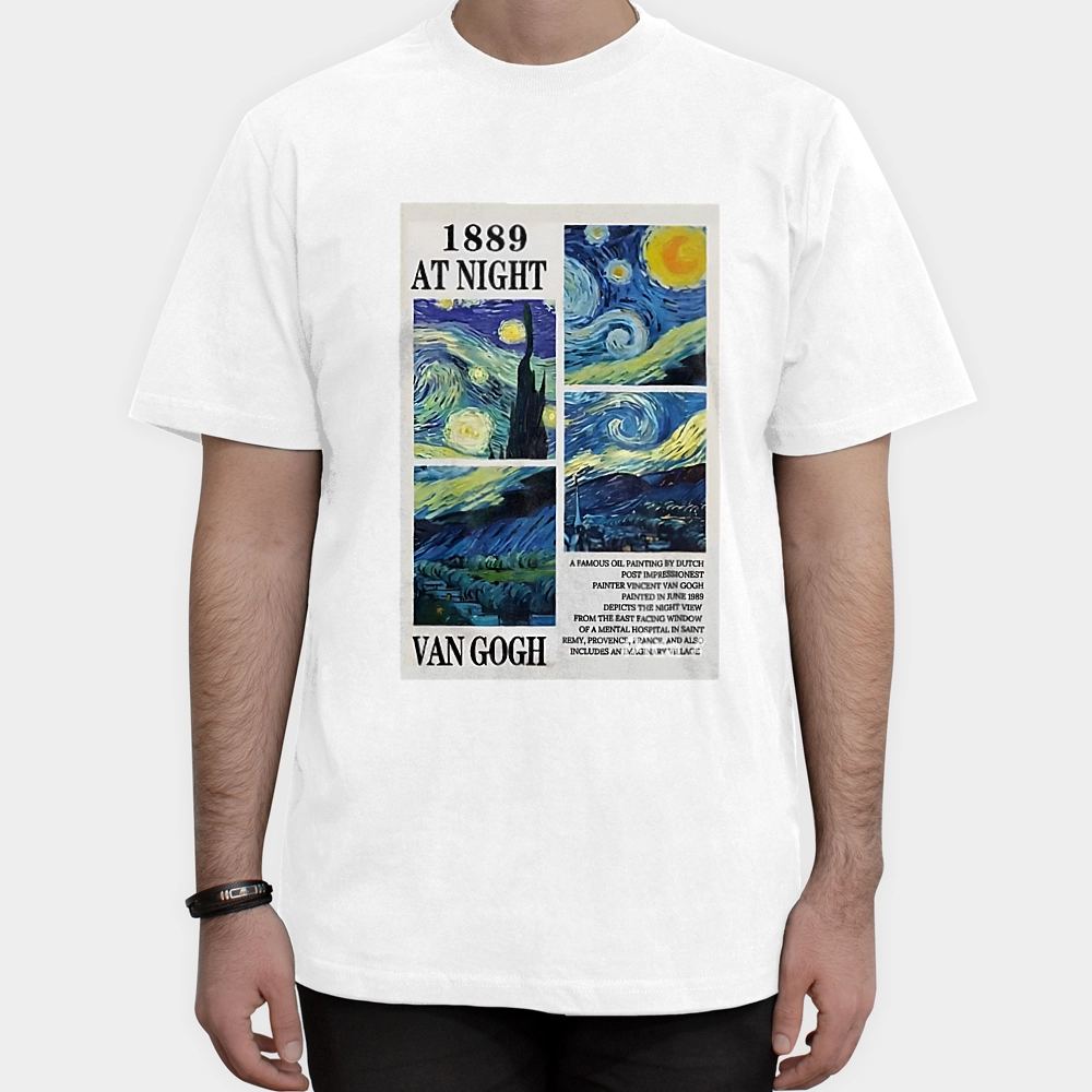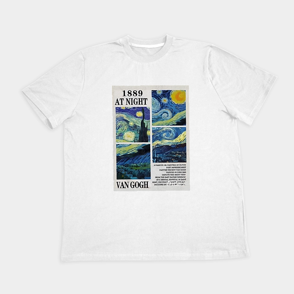در طراحی تیشرت نخی طرح شبهای پرستاره از جدیدترین روشهای چاپ استفاده شده تا جزئیات شاهکار «ونگوگ» بهزیبایی روی پارچه نخی نمایان شود. طرح معروف آسمان پرستاره با رنگهای چشمنواز و جلوهای زنده، بهگونهای چاپ شده که حتی پس از شستوشوی مکرر، کیفیت و وضوح خود را از دست نمیدهد.